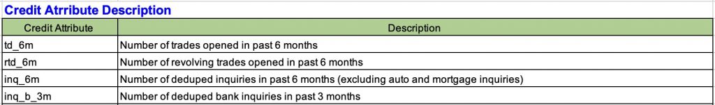Our research team at MaxDecisions picked these credit attributes believing that they reflect the most recent credit seeking behavior during post covid and 2022 inflationary period.