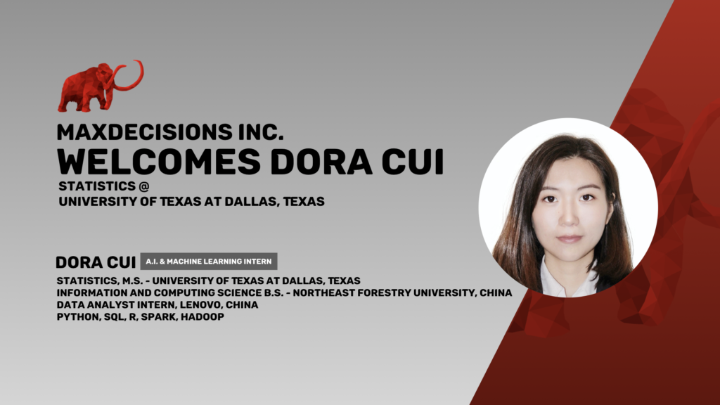 MaxDecisions welcome Dora Cui from University of Texas at Dallas, as our newest A.I. & Machine Learning Intern.