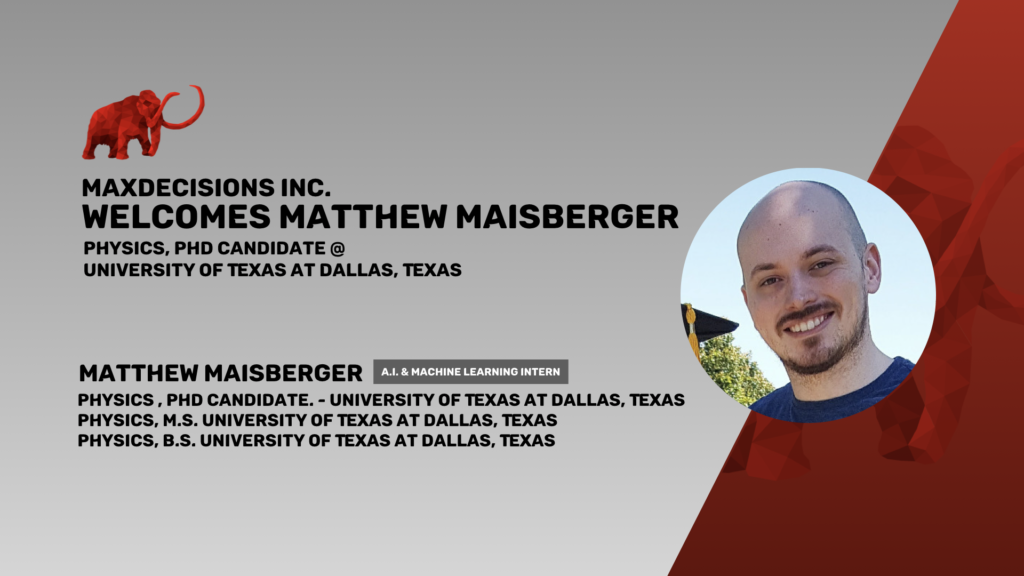 MaxDecisions welcomes Matthew Maisberger, A.I. & Machine Learning Intern – UT Dallas Ph.D Candidate Physics