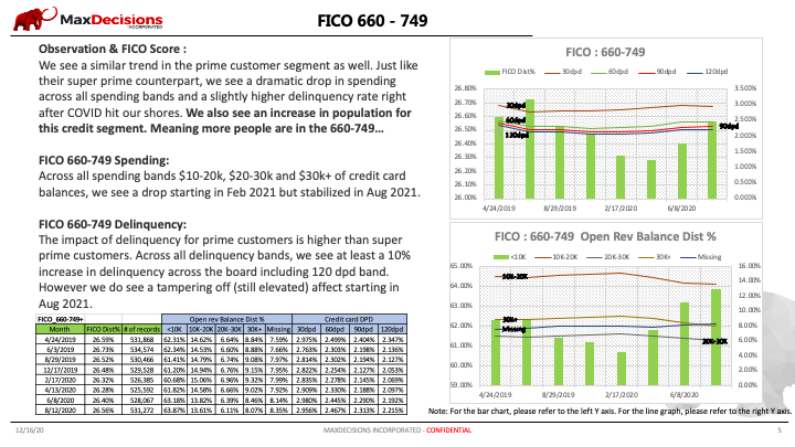 We worked for months with a national credit bureau to sample millions of Americans across all credit spectrum to understand their debt load, spending, and credit health. For example, we’ve found that the consumer spending behavior and their FICO movements are not what we expected.