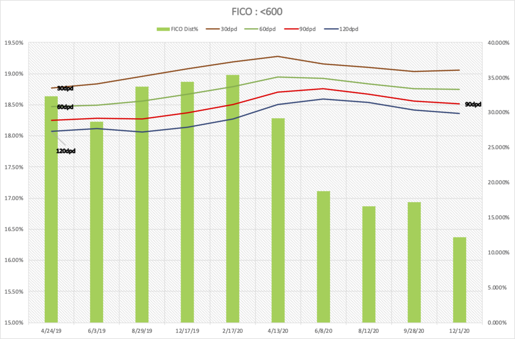Here are a few insights worth considering. 12% of the subprime population disappeared right after the pandemic exploded in the US, where did these consumers go? why are delinquency numbers going down for certain credit segments? Click here to download our updated analysis.